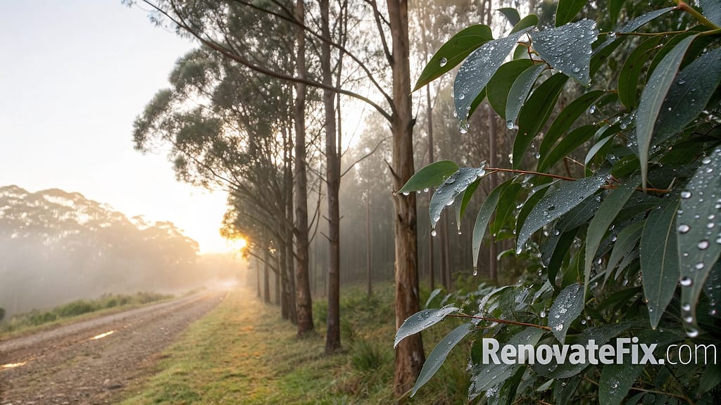Fast-growing eucalyptus specimens placed as screen plants provide powerful natural repellent properties while creating privacy barriers in larger garden spaces.