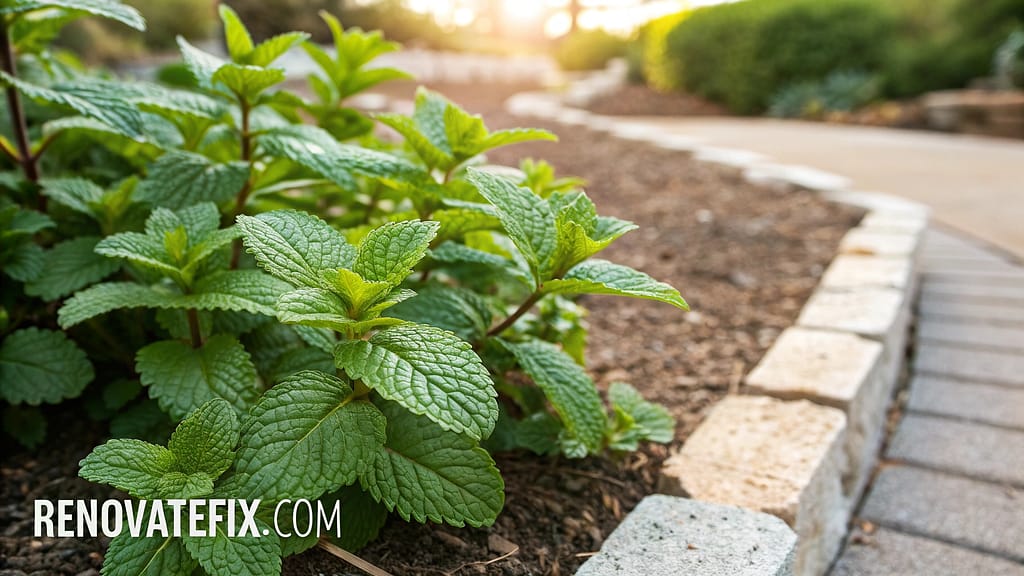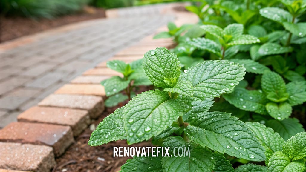 Growing low with spreading habit, mint creates effective ground cover in shady garden areas where other plants struggle.