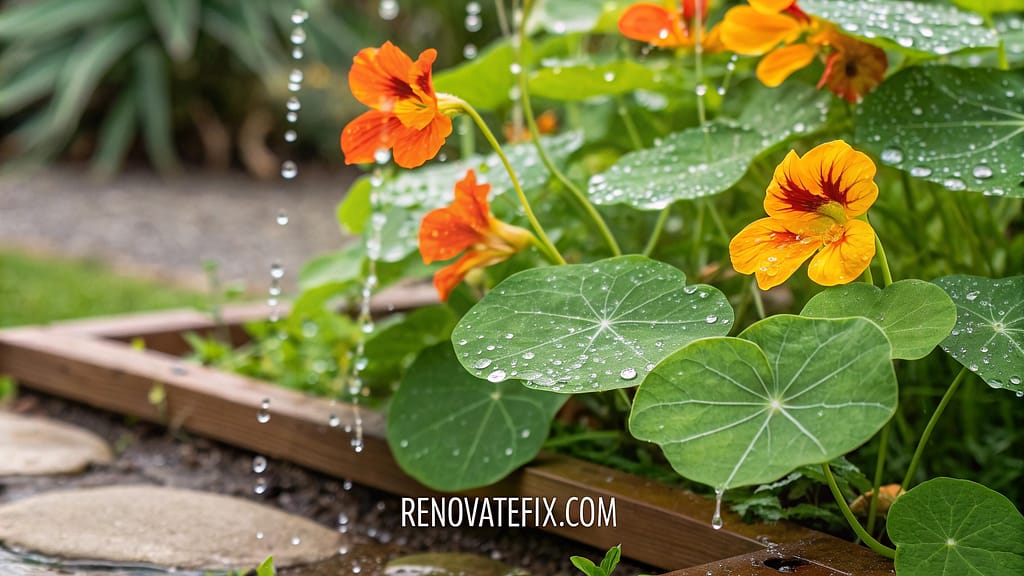 Round lily-pad foliage supports bright orange, yellow or red edible flowers that mosquitoes strongly avoid due to natural compounds.