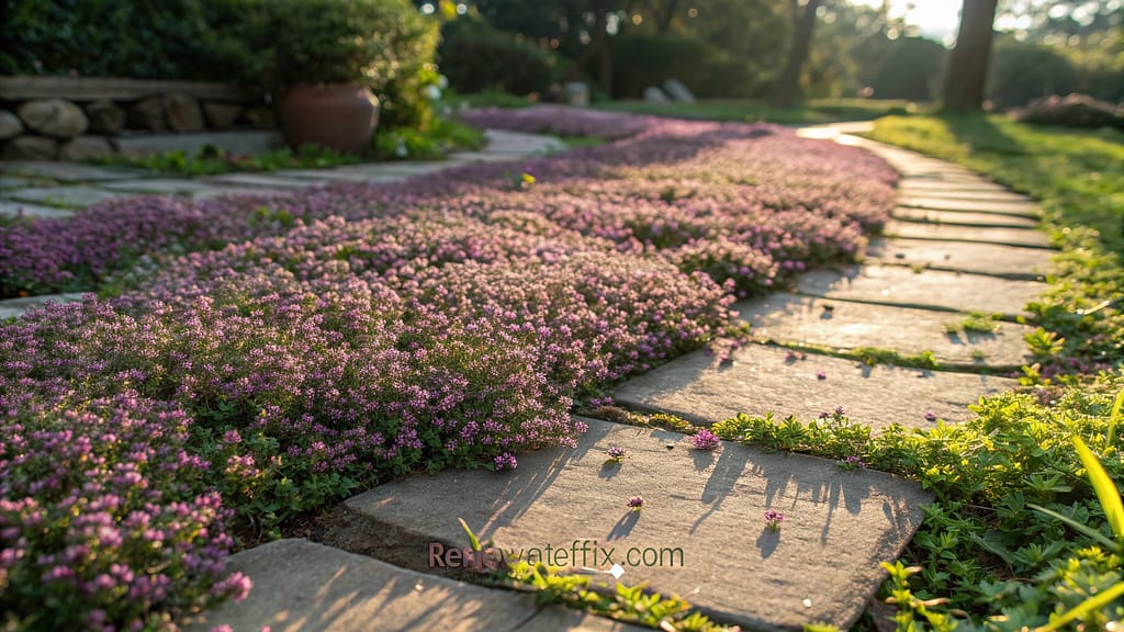 Creating dense mat when established, pennyroyal works effectively between stepping stones or as lawn alternative in smaller spaces.