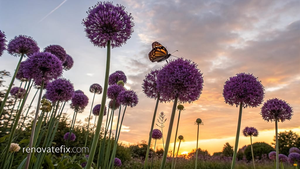 Ornamental onion family members produce globe-shaped blooms atop slender stems, creating architectural garden elements while naturally repelling mosquitoes.