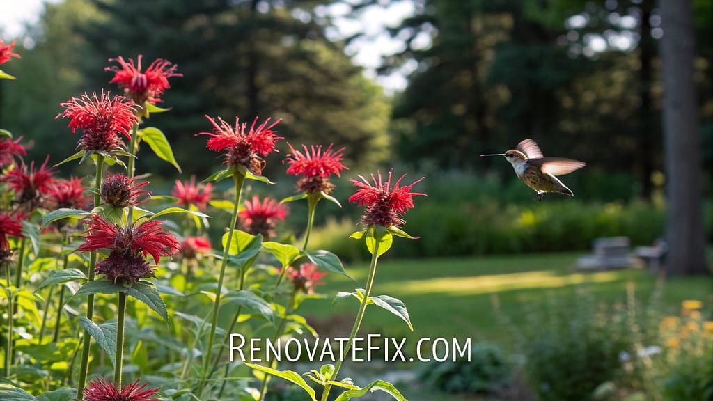 Vibrant red, pink or purple blooms atop fragrant foliage attracts beneficial pollinators while deterring problematic mosquitoes from garden spaces.