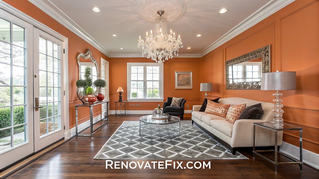 Warm pumpkin tones create cozy atmosphere perfect for country living spaces.