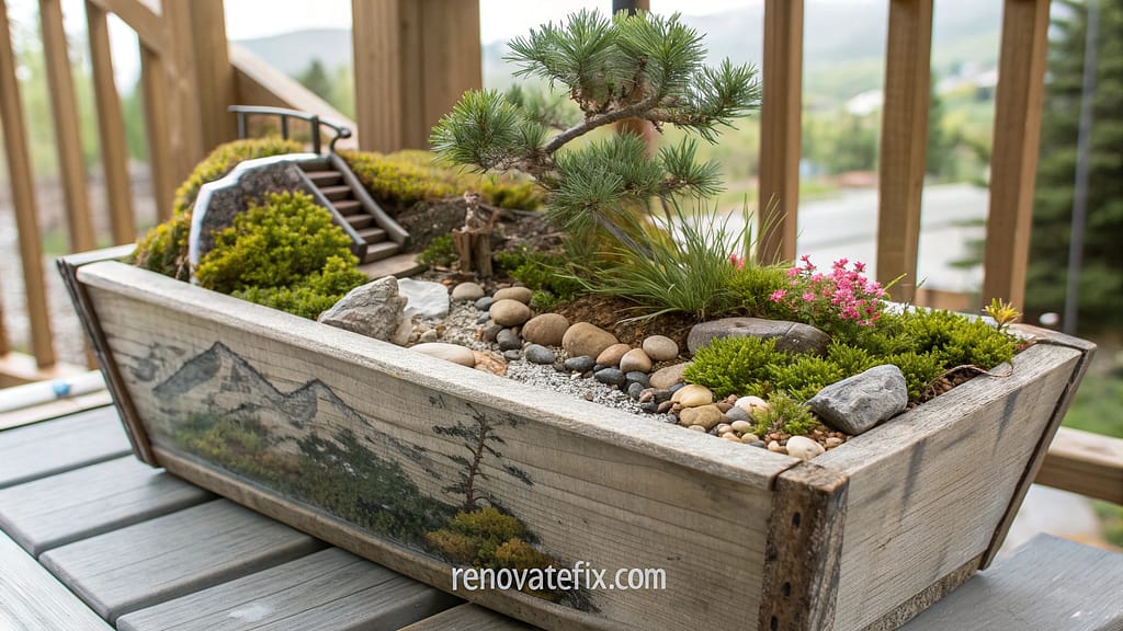 Match plant selections to container styles—perhaps prairie wildflowers in rusted farm equipment or alpine perennials nestled in weather-beaten wooden crates.
