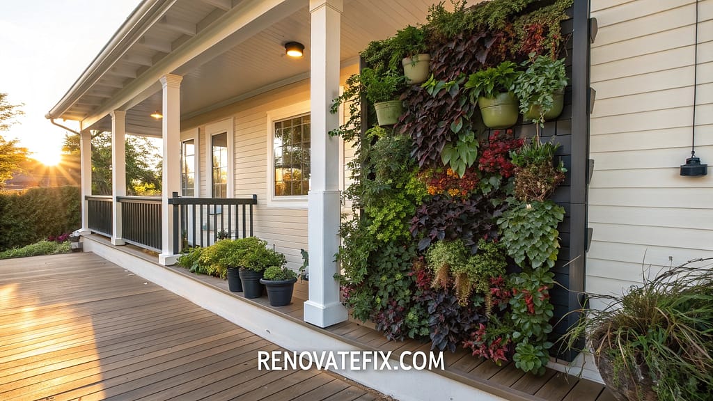 Fill your vertical garden with cascading vines, aromatic herbs, or vibrant flowering plants that bring depth and dimension to your porch environment.