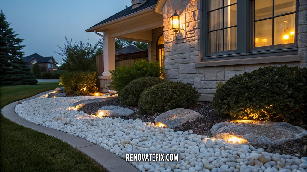 Illuminate darker corners through snow-white marble chips reflecting available light during evening hours.