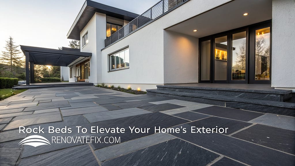 Rock beds offer an elegant, low-maintenance solution for enhancing your property’s curb appeal while creating visual interest around your home’s perimeter.
