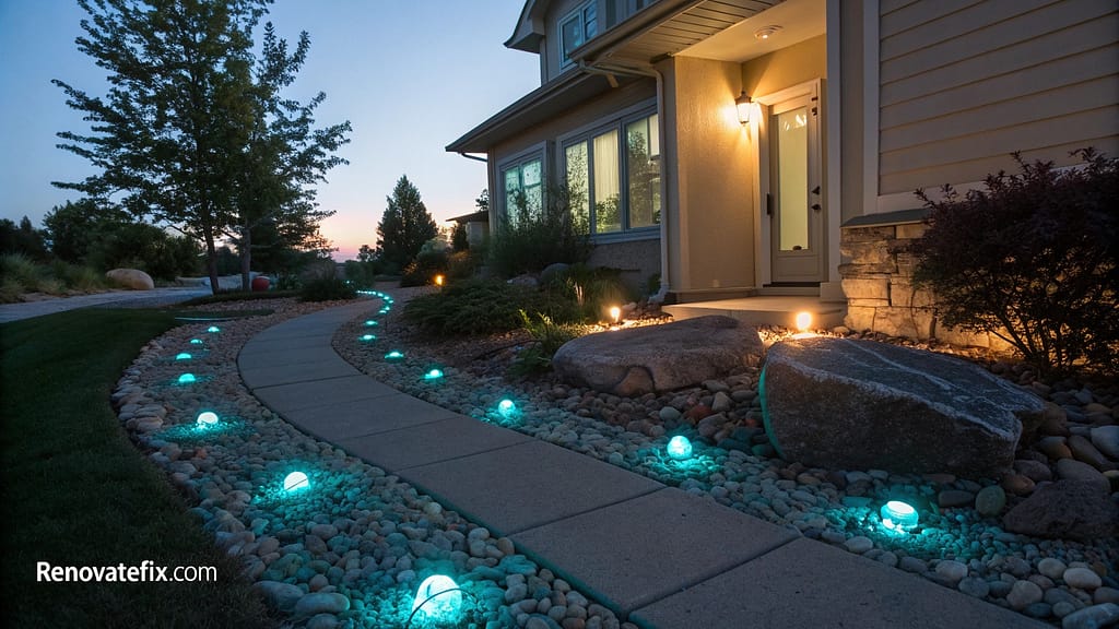 Enhance evening landscapes through glow-in-the-dark pebbles collecting solar energy during daylight hours.