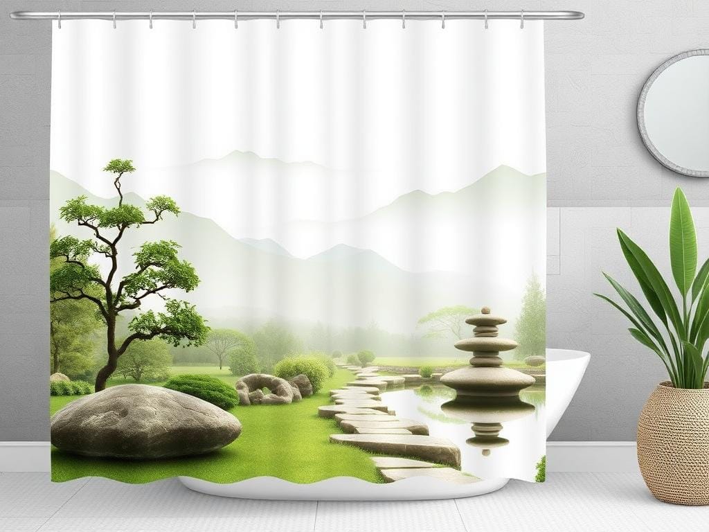 Create a tranquil oasis in your bathroom with a Zen garden-themed shower curtain.