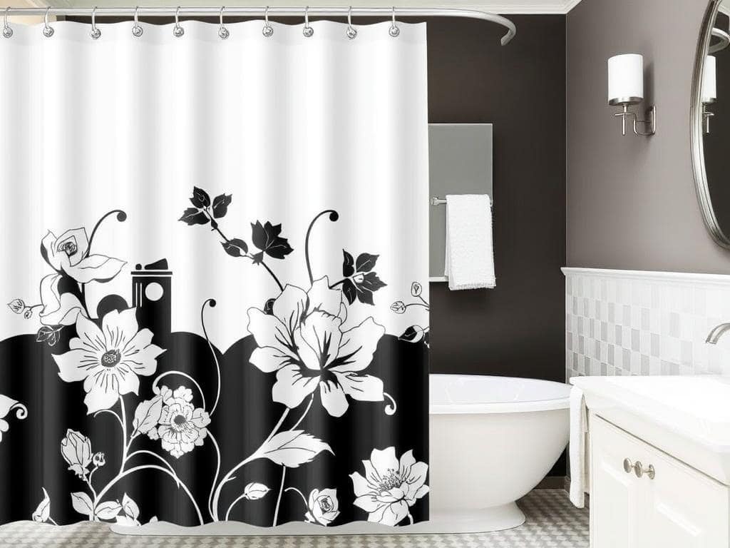 A classic monochrome shower curtain can bring timeless elegance to your bathroom.