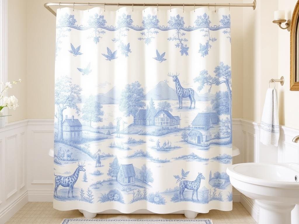Add a touch of elegance with a classic toile shower curtain.