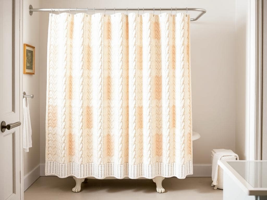 Bring warmth and texture to your bathroom with a cozy knit-patterned shower curtain.