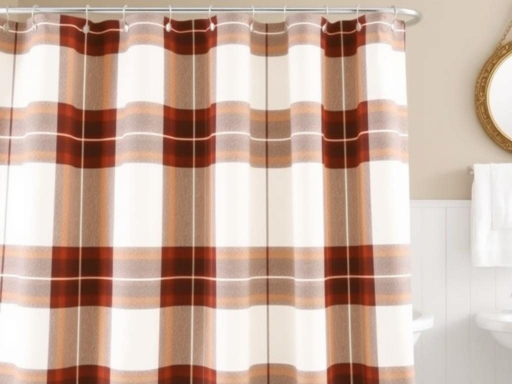 Capture the essence of rustic living with a farmhouse-style shower curtain that features plaid patterns or vintage prints.