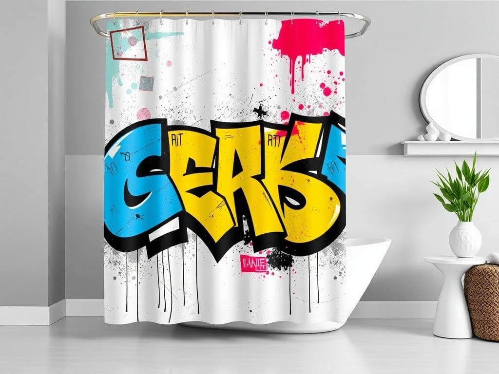 Make a bold statement with a graffiti art shower curtain.