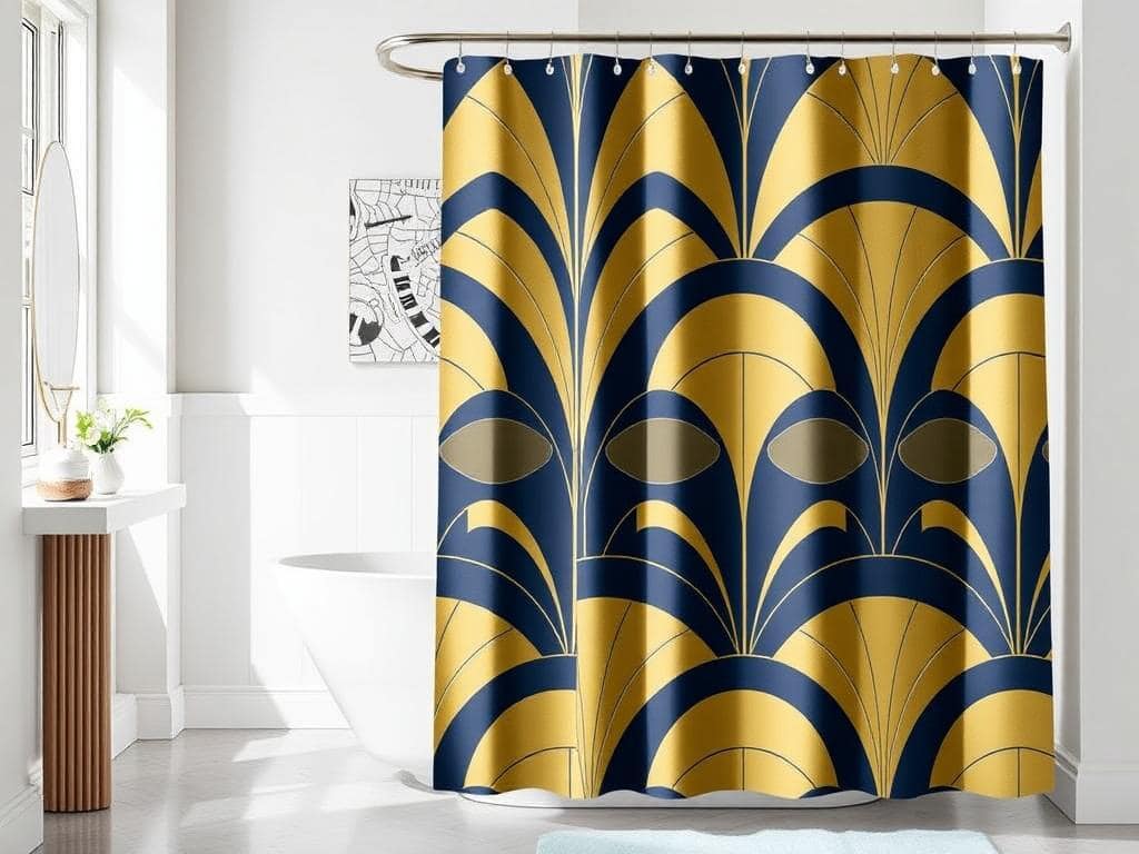 Embrace the glamour of the Art Deco era with a shower curtain that features bold geometric patterns and rich colors.