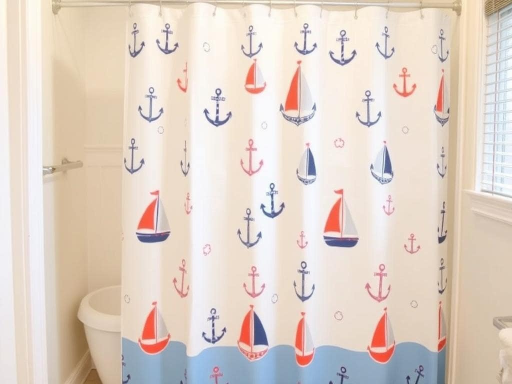 Capture the spirit of the sea with a nautical-themed shower curtain featuring anchors, sailboats, and stripes.