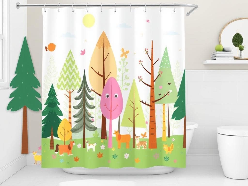 Bring a touch of whimsy to your bathroom with a forest-themed shower curtain.