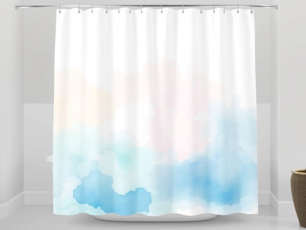 Infuse your bathroom with creativity through an artistic watercolor shower curtain that features soft, blended colors.