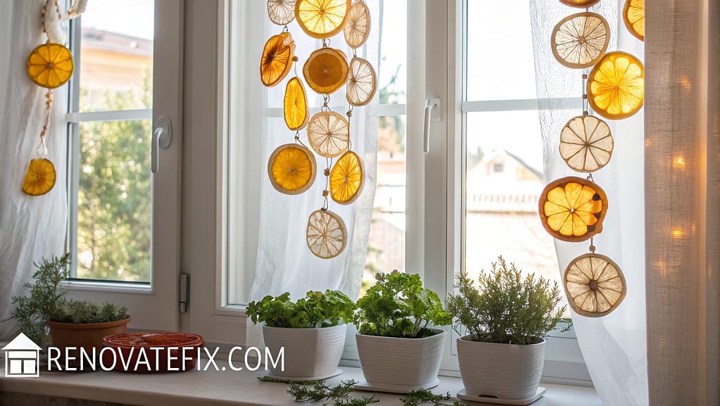String dehydrated orange, lemon and lime slices together, creating translucent decorative garlands that catch light beautifully when hung across windows or mantels.