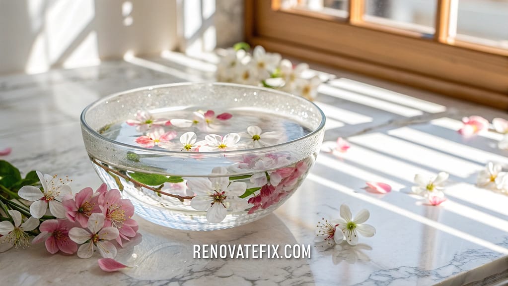 Fill shallow crystal or glass bowls with water and float seasonal blooms like pansies, daisies or cherry blossoms, creating ephemeral displays for coffee tables or dining centerpieces.