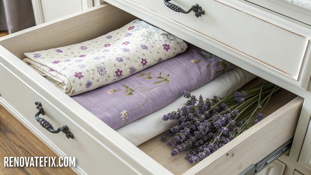 Refresh bedroom and bathroom storage with handmade fabric pouches filled with dried lavender buds, introducing subtle fragrance while protecting garments naturally from moths.
