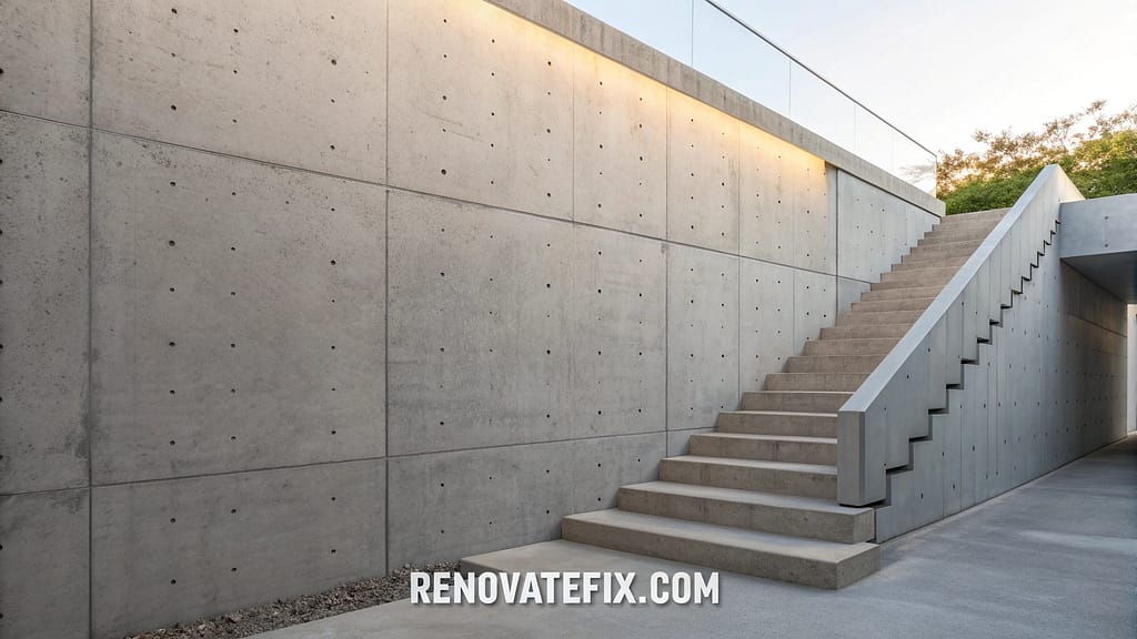 Raw concrete surfaces provide a minimalist, architectural statement with subtle variations in texture and tone.
