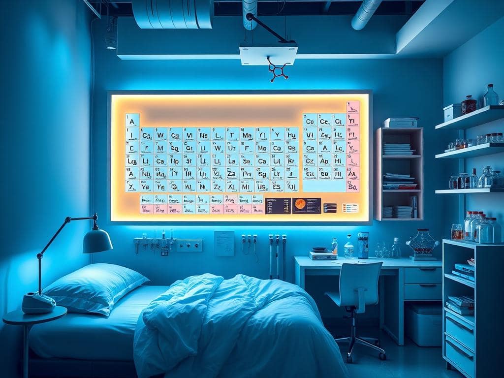 Transform the space with periodic table displays, molecular structure art, and safe experiment area.
