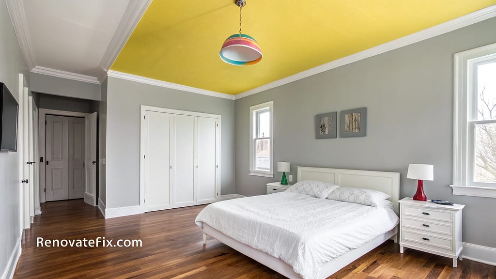 Paint your ceiling a vibrant lemon yellow while keeping walls neutral to draw the eye upward and add unexpected visual interest.