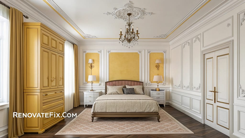 This application highlights decorative trim while introducing playful color to your bedroom.
