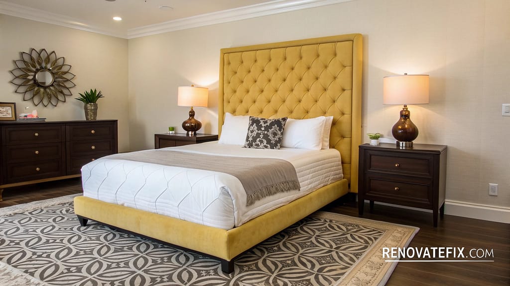 Anchor your bedroom with a maize yellow upholstered headboard that makes a statement while providing comfort.