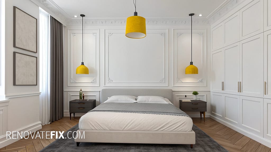 This practical yet decorative solution adds architectural interest and storage without dominating your bedroom space.