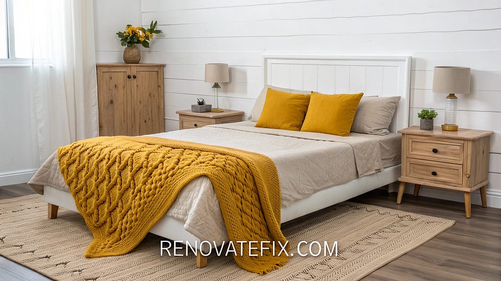 This textile accessory adds rich golden tones to your bedroom while offering practical comfort for cooler evenings.
